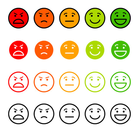 Emoji Feedback 怒る 顔 不幸 うれしい 微笑 Depression 赤 悲しい 幸せ 単純である 特徴 緑 Feedback うれしい 微笑 表現 社会 Changes 悲しい 幸せ Canstock