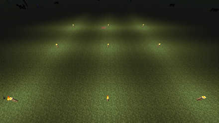 さて、湧きつぶしをするに当たりオススメの方法があるから紹介する。 それは、 6マス単位に松明を置く という方法だ。 パンプキン タテ・ヨコどちらに対しても 「"間"を6マス開けて設置」 していくわけだな。 下の画像を参考にしてみてくれ 村を拡張するための湧き潰し 地面を2ブロック掘り 《ジャック・オ・ランタン》→《葉ブロック》 の順に埋め込み、湧き潰しを行っていきました。 間隔は先ほど決定した4ブロック置きです。 最初の画像に比べかなりの場所が明るさを保った状態となりマインクラフト 松明の間隔この動画を見れば松明の間隔、湧き潰しの置き方の一例がわかりますMinecraft Java Editionマイクラの矢細工台の使い方